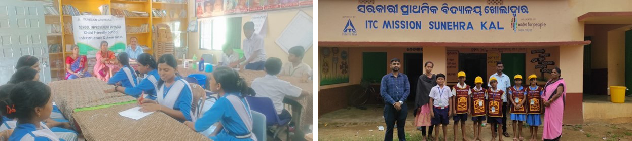 Under the ITC Mission Sunehra Kal, six child cabinet were formed with defined roles and responsibilities, enabling students to learn about child rights, handwashing, sanitation, and toilet usage. They also took charge of the Swachhata Monitoring Board. This initiative has empowered children as leaders, strengthened hygiene awareness, and encouraged active participation in school cleanliness and climate-related activities.