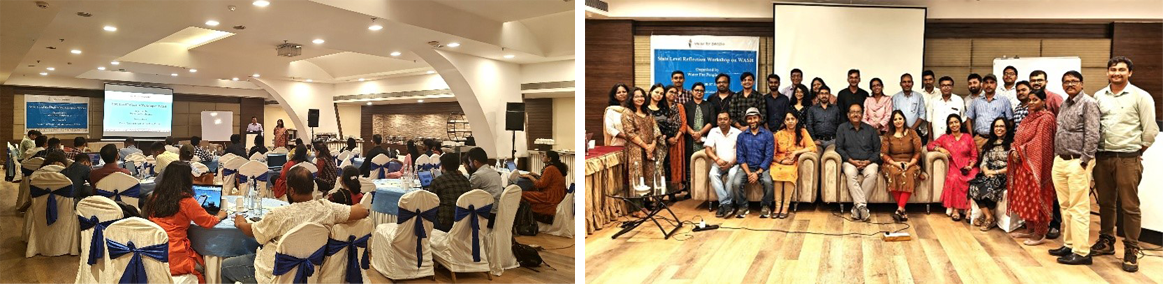 A one-day state-level reflection workshop aligned with the Building Block framework was organized in Kolkata, bringing together senior officials from PHED, P&RD, WBSRLM, Education, Health, STARPARD, WRDD, and the Environment Department, along with sector experts and development partners. The workshop assessed systemic gaps in WASH and water resource management across West Bengal. Key challenges highlighted included gaps between planning and execution of schemes, weak monitoring systems, inadequate community engagement, and poor management of solid waste and MHM. Discussions emphasized the need for stronger inter-departmental coordination, localized capacity building, and sustainable, community-driven approaches to improve service delivery.