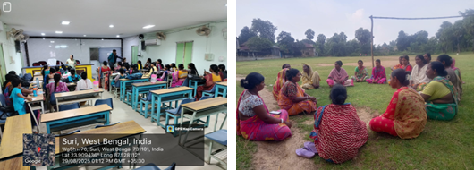 Between July and September 2025, the West Bengal State Rural Livelihood Mission (WBSRLM), with technical support from Water For People India, conducted a series of capacity-building programmes in Birbhum District. Starting with a District Convergence Workshop on July 4, followed by block-level orientations, over 75,000 people were reached on WASH, Gender, and FNHW issues. In August alone, 74,386 participants were sensitized through grassroots campaigns. Under the Swachh Sabuje Anandadhara initiative, SHG members in Rajnagar and Khoyrasol led door-to-door outreach, school and health centre visits, and awareness drives, reaching 375 households across 45 villages within 10 days. This effort highlights how large-scale training and community action are fostering a resilient, gender-responsive WASH ecosystem in Birbhum.