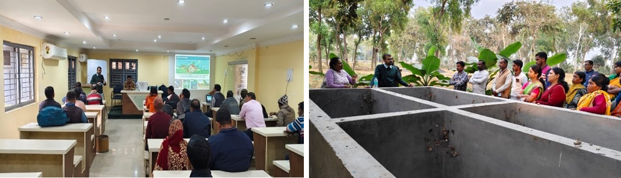 Under the Rural Sanitation Cell, Water For People India supported GPs and block engineers in Ganga-bordering blocks to conduct drain surveys, resulting in the mapping of 1,086 drains and identification of suitable technologies. The consolidated report has been submitted to the Ministry of Jal Shakti. In parallel, block-level functionality trainings on Solid Waste Management and Plastic Waste Management were conducted in Birbhum and Jhargram through convergence with the Panchayats & Rural Development Department and District Sanitation Cells. The hands-on, field-based trainings focused on waste segregation, composting, plastic management, and worker safety, strengthening the capacities of SHGs, sanitation workers, and GP teams to move from infrastructure creation to sustained service delivery.