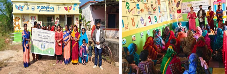 Integrated WASH interventions were implemented under ITC Mission Sunehra Kal across 6 schools, 8 Anganwadi Centres (AWCs), and surrounding communities in Khordha district. Global Handwashing Day and World Toilet Day were observed through community and school events, reaching over 450 participants via demonstrations, folk media, and discussions. Focused sessions were held for adolescent girls on hygiene and Menstrual Hygiene Management, along with mothers’ meetings and community awareness drives on sanitation, safe water handling, nutrition, and waste segregation. School platforms such as Child Cabinet trainings, Mothers–Teachers Association meetings, and School Management Committee meetings strengthened collaboration for regular monitoring and upkeep of WASH facilities, reinforcing sustained behaviour change.